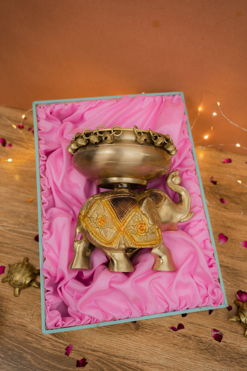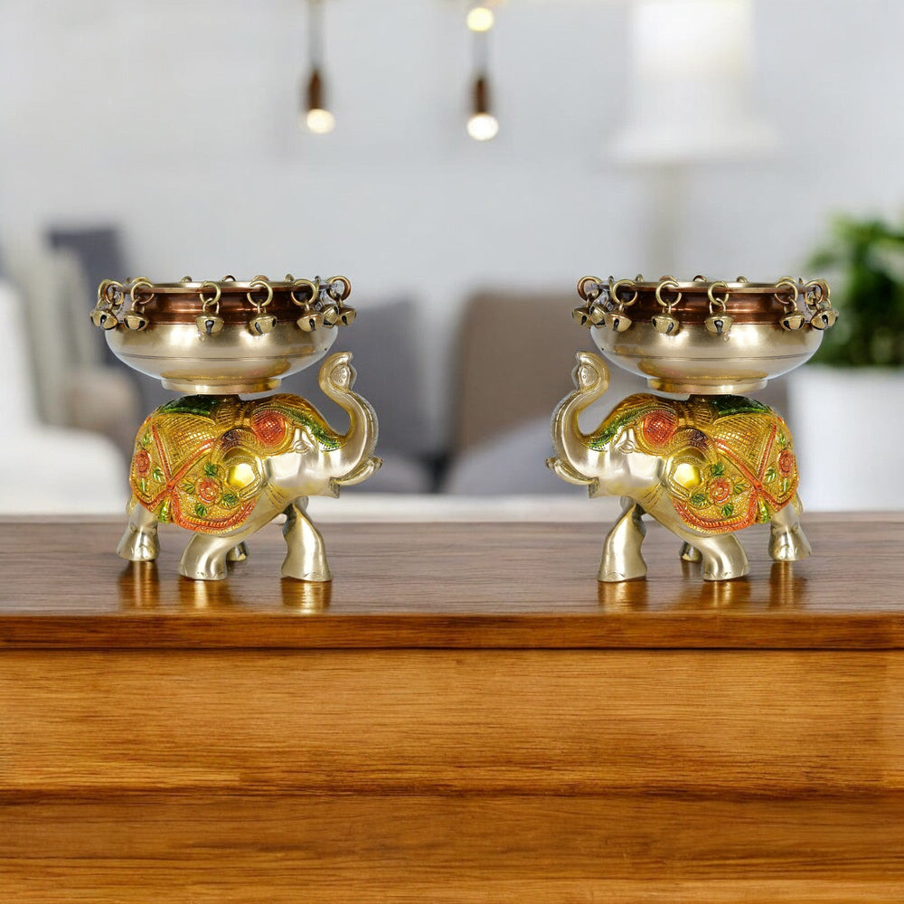 Add elegance and tradition to your home with this Brass Elephant Urli, a perfect blend of artistry and spirituality. Featuring a finely crafted elephant base with a decorative urli bowl, it is ideal for floating flowers, candles, or potpourri. Elephants symbolize wisdom, strength, and prosperity, making this piece a beautiful and auspicious addition to your home décor.