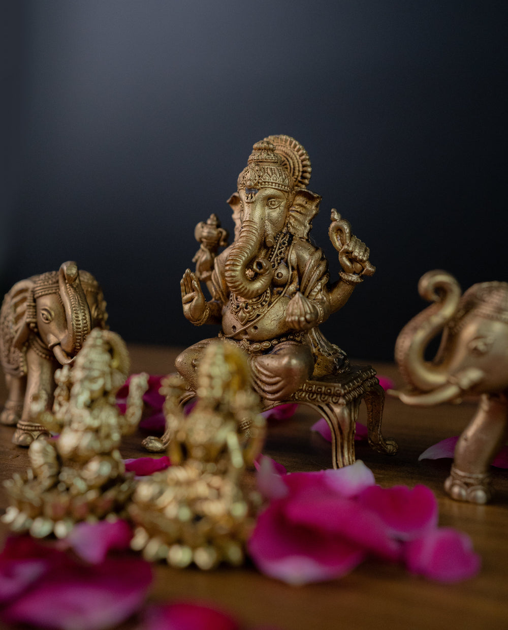Brighten your space with our Brass Ganeshji with Singhasan statue. This elegant piece shows Lord Ganesh sitting on a detailed brass throne. Perfect for home altars or as a gift, it adds a touch of tradition and charm to any room. The statue symbolizes wisdom and success, making it a meaningful addition to your decor. Its beautiful craftsmanship and spiritual significance make it a great choice for enhancing your environment with a touch of grace.