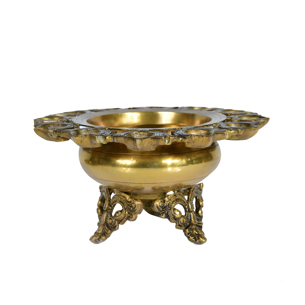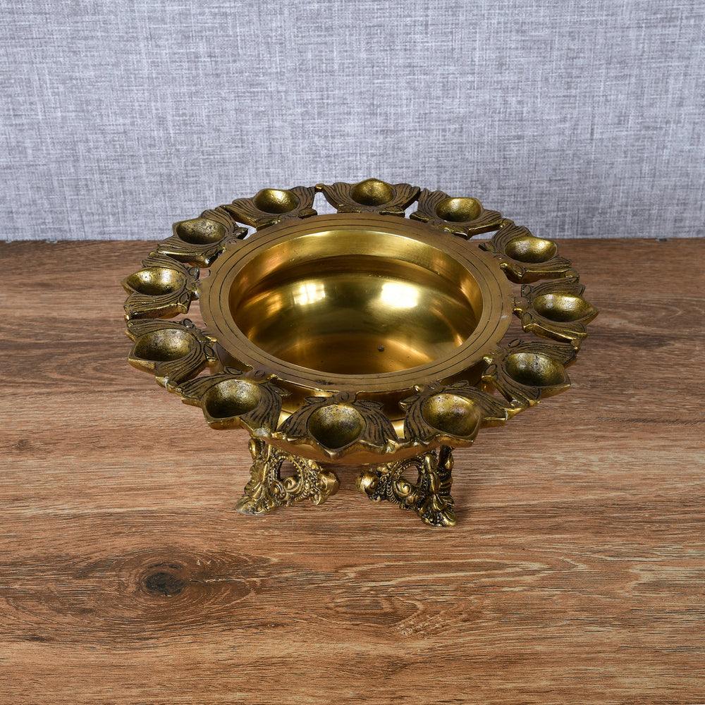 Bring elegance and positivity into your home with this Brass Lotus Urli Bowl, a symbol of purity, prosperity, and divine blessings. The rim is beautifully crafted with lotus motifs, making it an auspicious piece for floating flowers, candles, or diya décor.