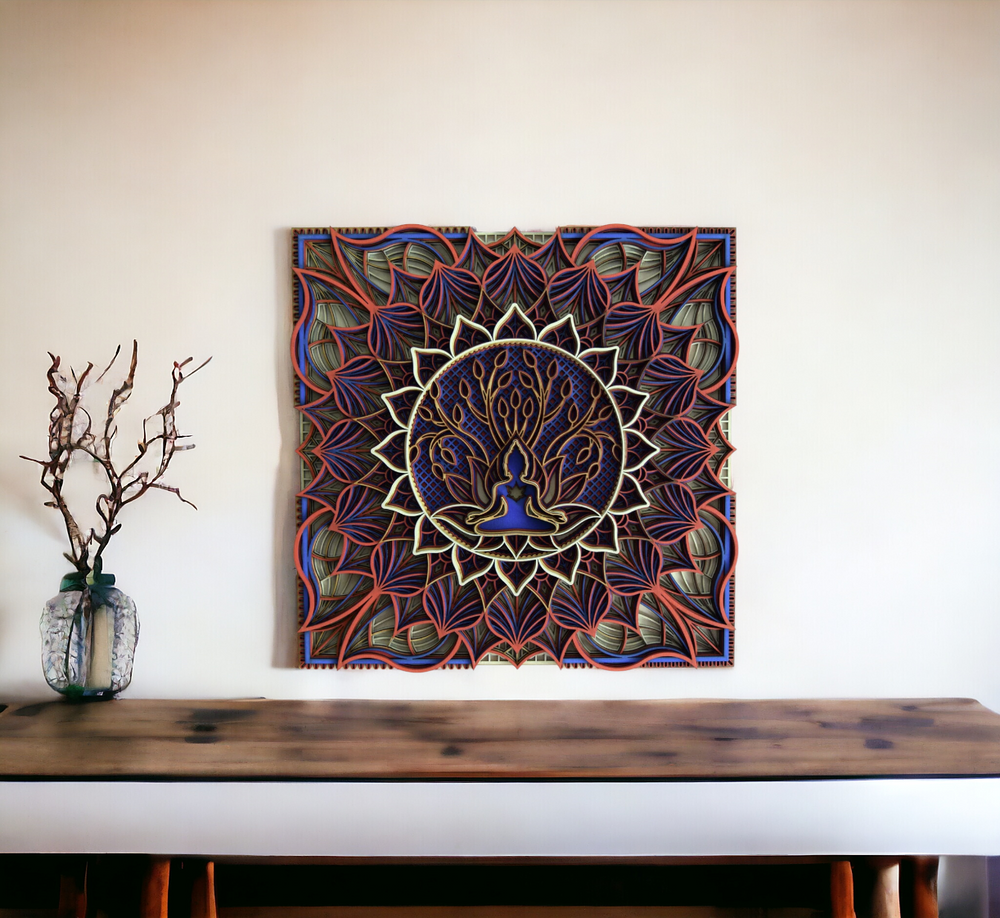 Earthy tones balance your space, making meditation deeper. It's not just decor—it's a guide for mindfulness. With this mandala, you find calm and insight daily. It's crafted for clarity, perfect for anyone seeking serenity and wisdom. Simple, yet deep, it brings enlightened peace to your home.