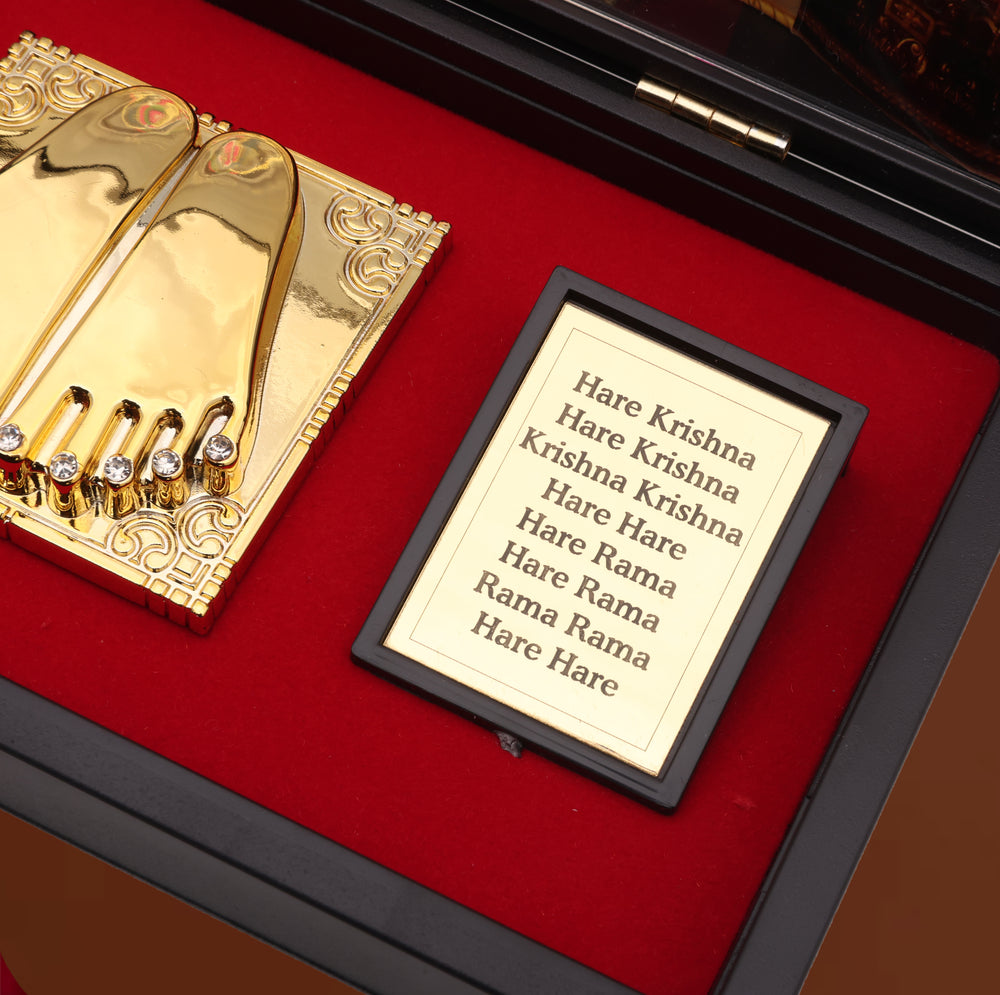 Crafted with devotion and elegance, the box features intricate artwork of the holy trinity and sacred mantras, making it perfect for personal devotion, gifting, and travel. Whether kept in your pocket, office desk, car, dorm room, or travel bag, this portable temple ensures you are always surrounded by divinity.