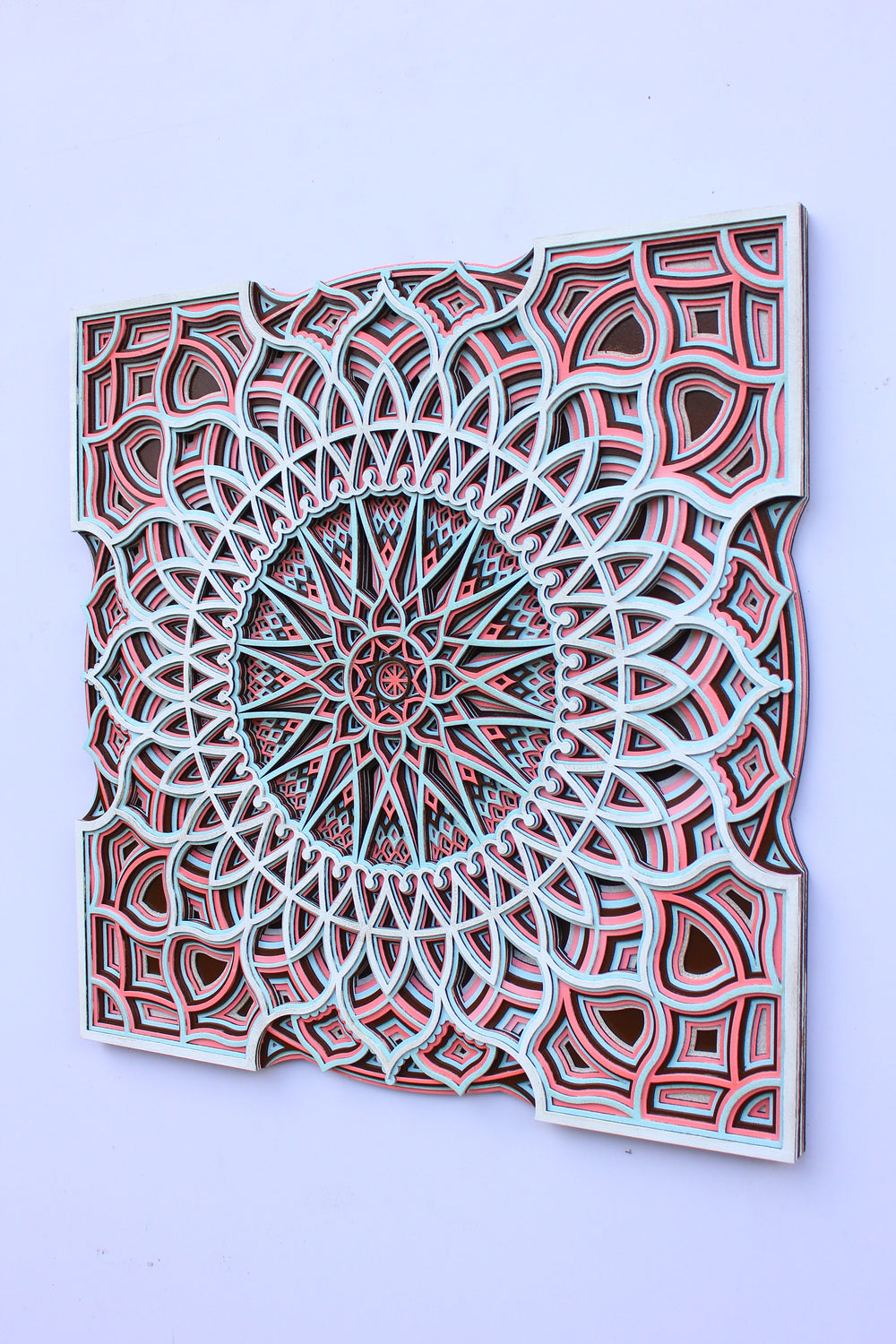 In line with the Vastu Shastra, this mandala’s square shape symbolizes stability and balance, making it a powerful emblem of grounded energy for your home. It’s not just a piece to admire; it’s a spiritual tool believed to attract prosperity and deflect negative vibes, turning your space into a river of positive energy.