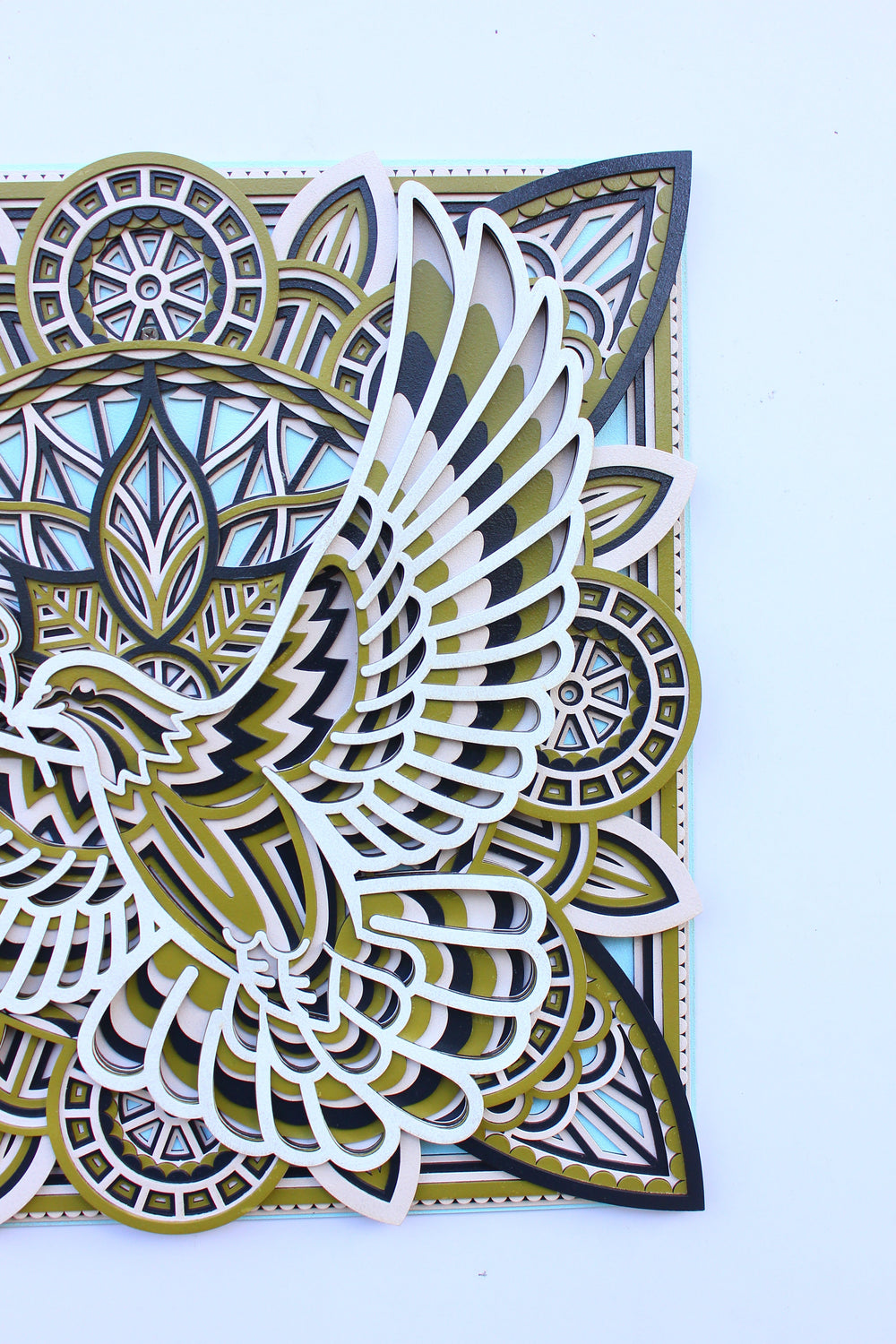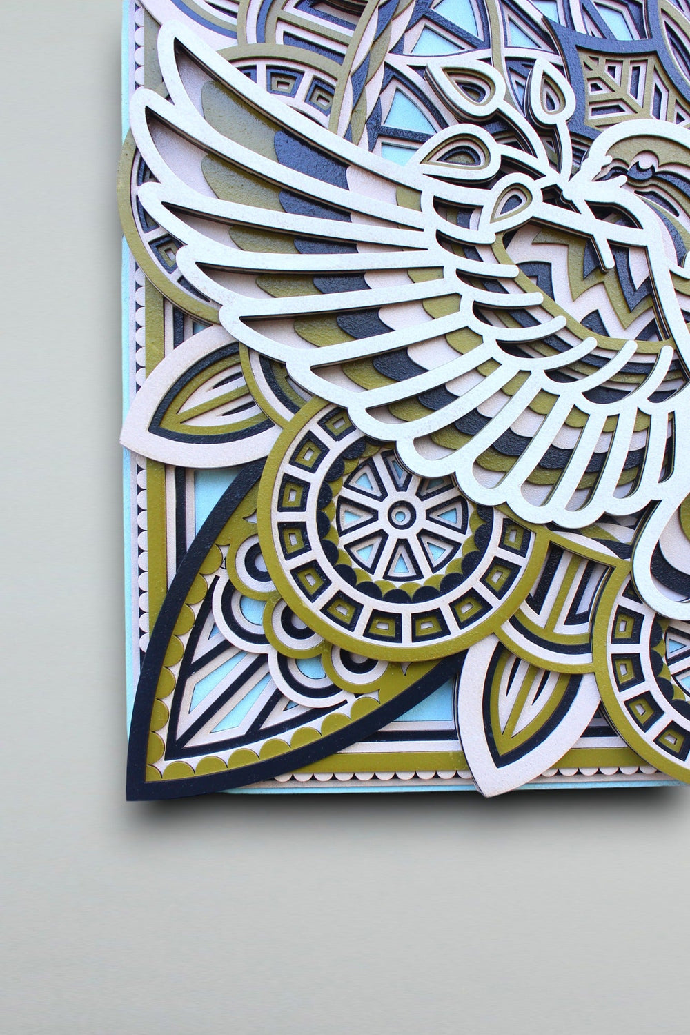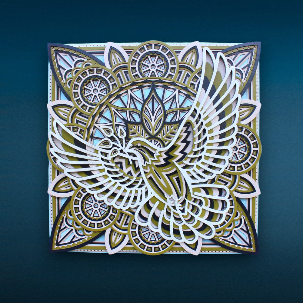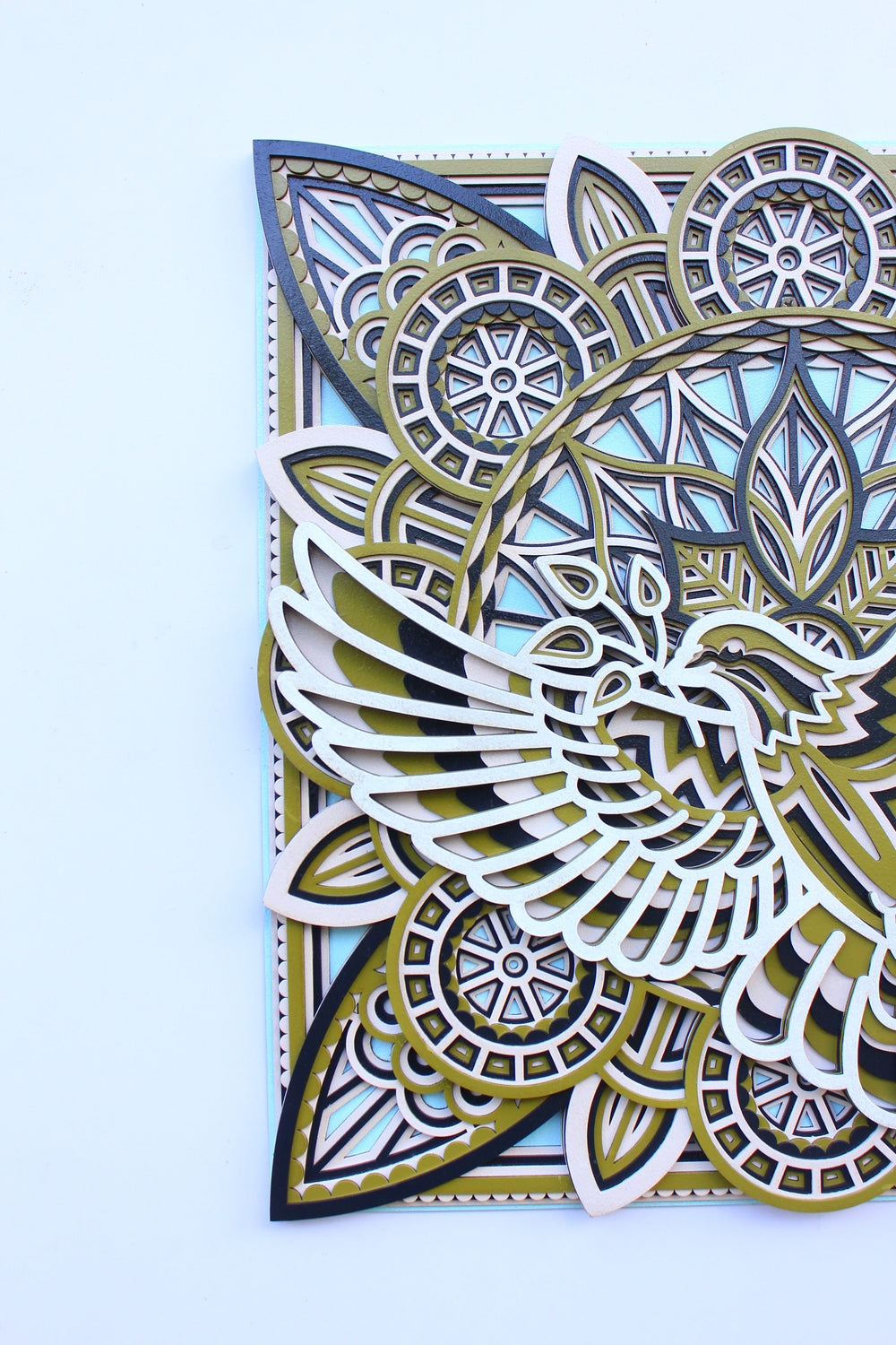 The New Dove Colored Square is an embodiment of calmness and skilled artisanship. Each piece is meticulously handcrafted, weaving together layers of richly stained wood to create a charming mandala pattern that invites a sense of calm and balance into any space.