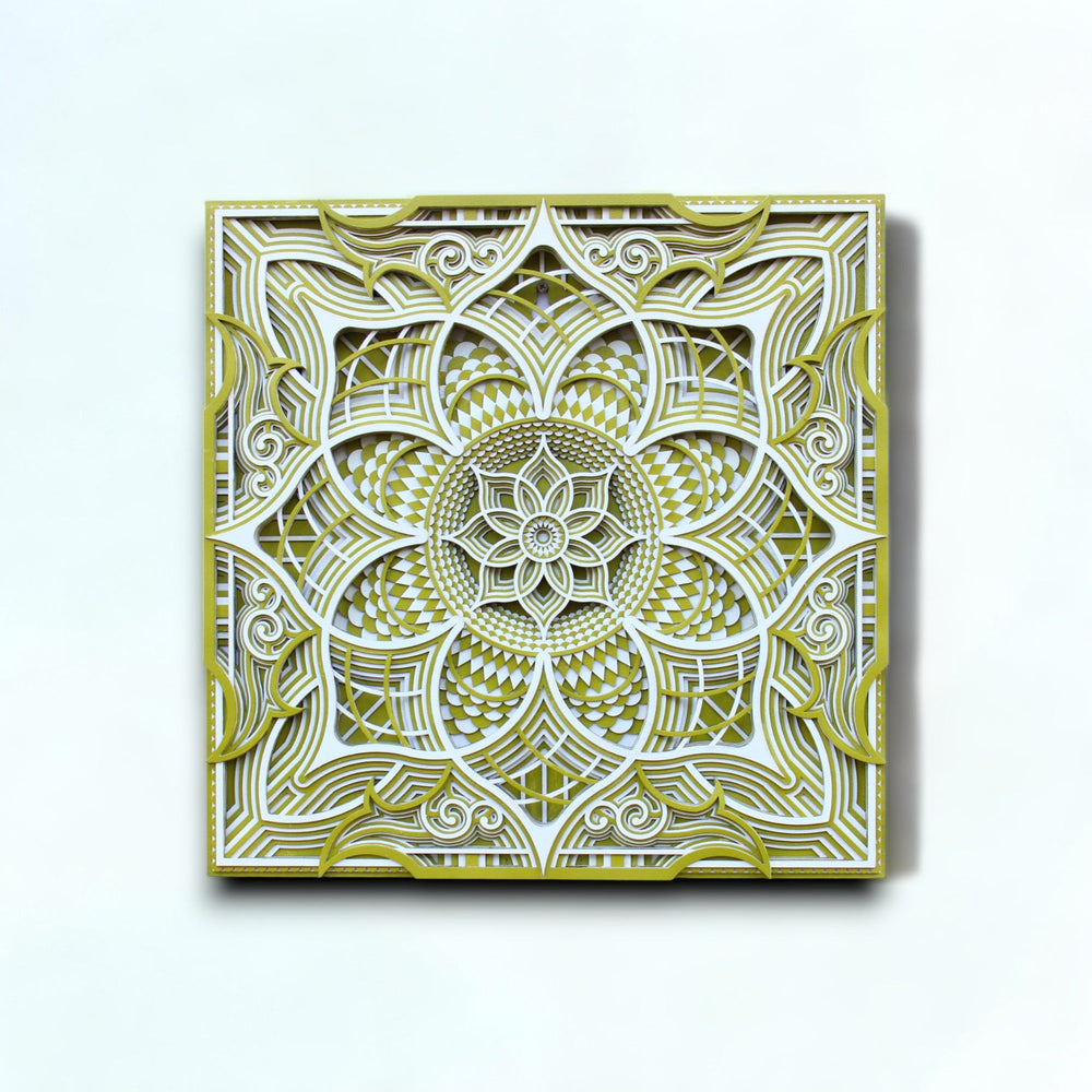 Immerse yourself in the vibrant energy of the 'New Today's M234 Square Mandala'. This lovely piece of art blends the ancient wisdom of mandalas with a fresh, modern design. Each spiral and curve in its square frame is filled with intention, channeling the sacred geometry that is known to draw in positive energies and create a sense of balance in the Vastu Shastra.
