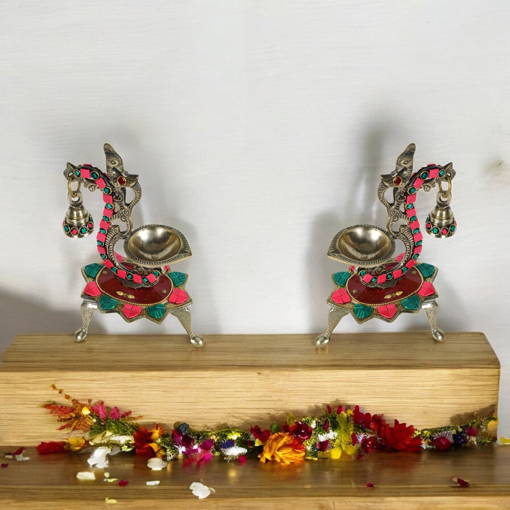 Bring divine light and positivity into your home with this Brass Peacock Diya, beautifully designed with colorful embellishments. The peacock symbolizes beauty, prosperity, and grace, while the diya represents knowledge and enlightenment. Perfect for daily pooja, Diwali, weddings, and auspicious occasions, this diya adds both spiritual and decorative charm to your home.
